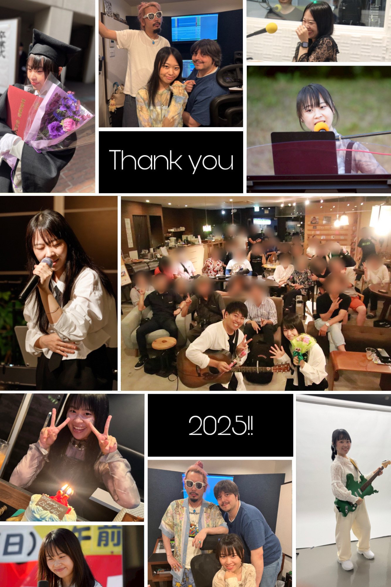今年は、初のツーマンライブをはじめ、いろんな場で音楽を届けさせていただいたり、貴重な経験をさせていただいたり、自分としてもステップアップに繋がった1年でした。